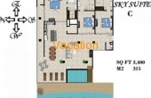 Penthouse A offers 3 bedrooms, 3 ½ baths on the third story.